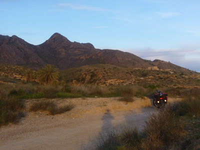 Ik kom veel SUV's en een enkele motorrijder tegen: ook de Costa-toeristen weten dit mooie gebied te vinden. Ik ben benieuwd of ze ook op een mooi plekje langs het strand blijven slapen. Zelf ben ik echter een gezagsgetrouwe burger die niet doet alsof hij de vele bordjes "verboden te kamperen" niet ziet, en ik rij door naar Bolnuevo waar een camping is.