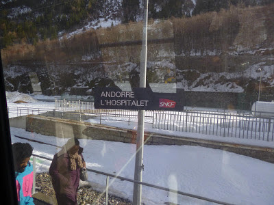 Jawel, Andorra. Ik ben op een paar kilometer na niet in het land geweest, maar wel op het station ervan! De tweede verrassing is de grote meute mensen die daar instapt. Veel immigranten, wellicht mensen die in Andorra werken maar nu teruggaan naar hun familie voor de kerst. Ik word er een beetje nors van omdat ik had gerekend op een ontspannen boemeltje door een fraai berggebied. Ontspannen gaat het echter niet worden, daarvoor is de trein nu te vol met bier uit blik drinkende schooiers, snoeihard hiphop luisterende pubers en gezellige gezinnetjes.