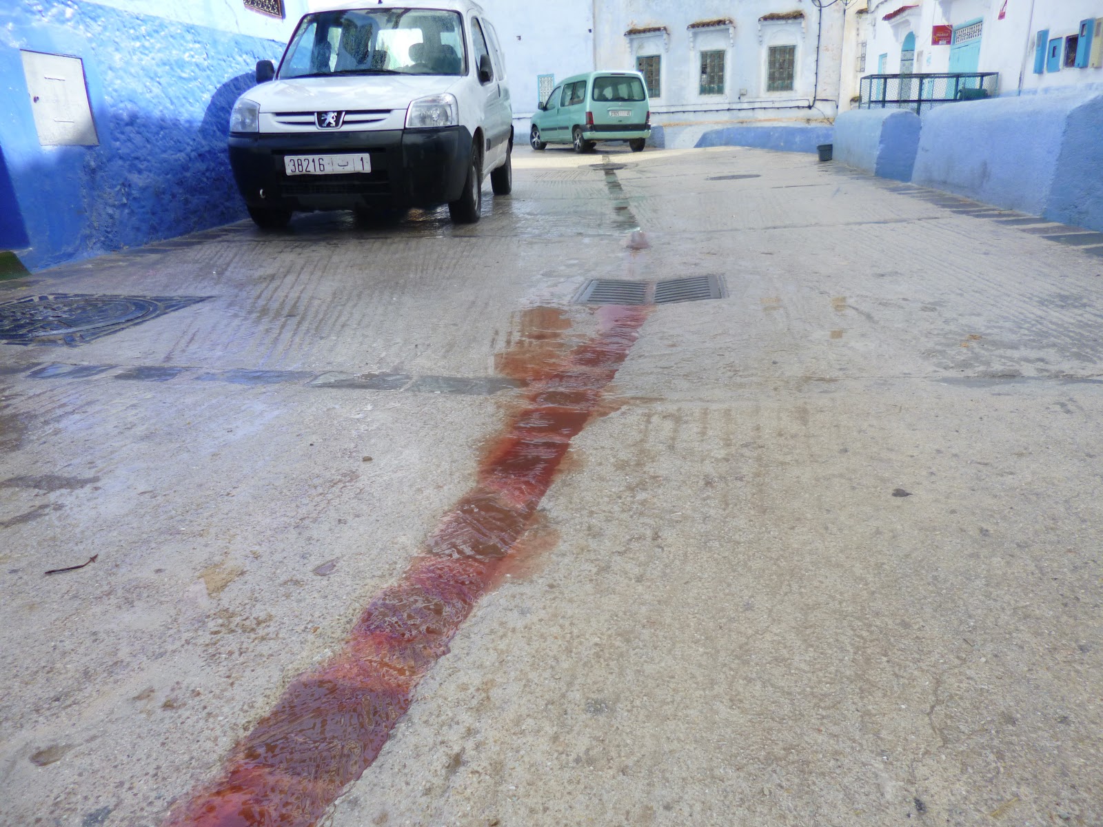 | Bloodied rainwater in Chefchaouen |